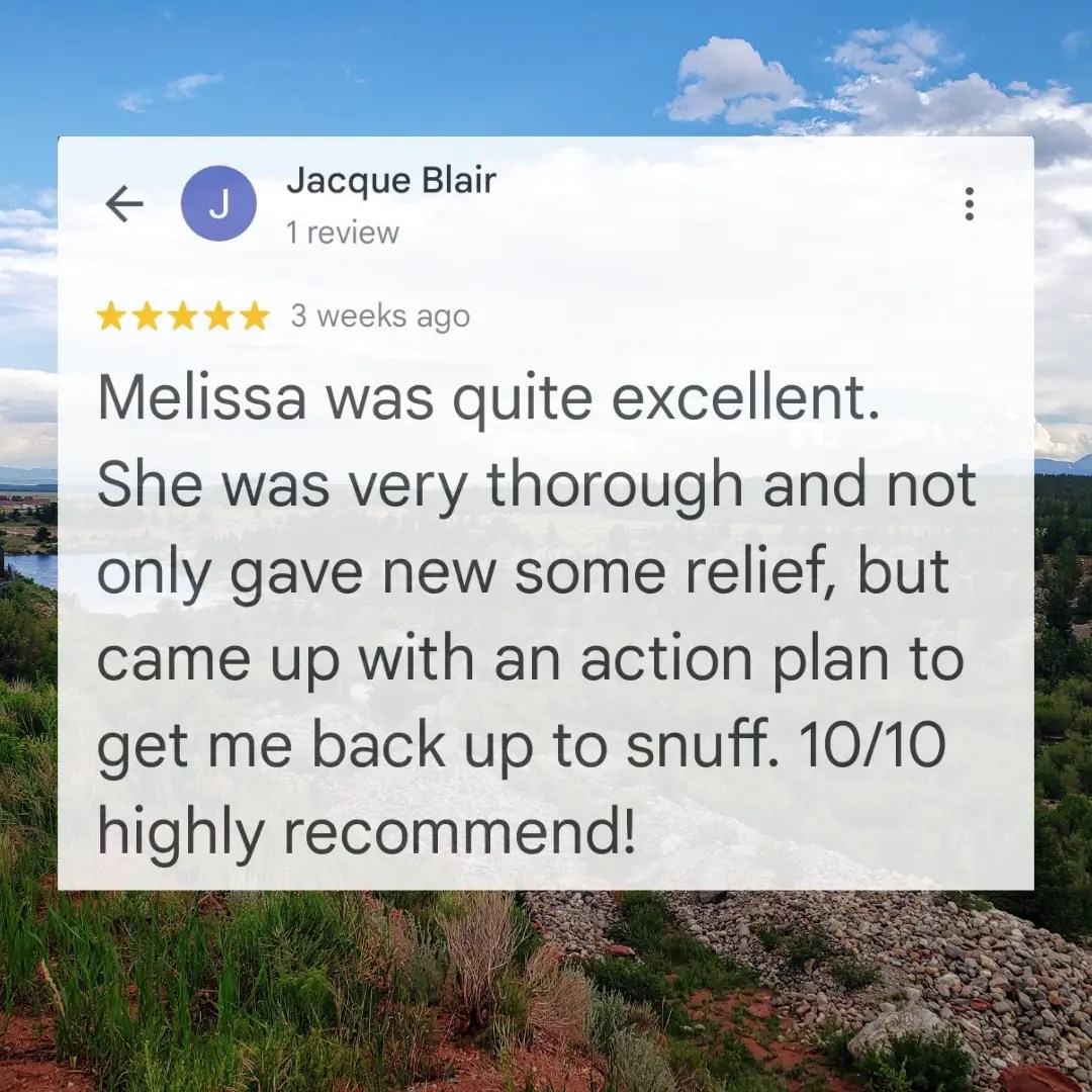Reviews Can you help? Meeker Medical Massage is still a tiny operation, so we rely on word-of-mouth and reviews.We’d appreciate your time if you can leave a review on Google maps. Click here!